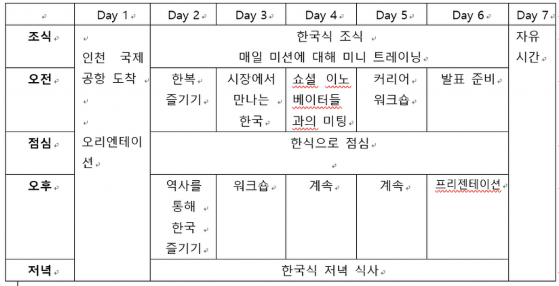 해외에서 한국으로 공부하러 온 청년들이 한국을 탐험하고, 경험하고, 교류할 기회를 찾고 있나요? 여행의 즐거움뿐만 아니라, 청년들의 리더십까지 동시에 키울 기회가 있습니다. 한국 및 해외의 전문가들이 글로벌 마인드를 품은 청년들이 무엇을 찾고 있는지 경청하고, 맞춤형 트레이닝을 제공합니다. 한국 내의 풍부한 인적 네트워크는 해외 청년들을 환영합니다. 사회적 기업, 교육, 역사, 예술, 문화, 미디어, 종교 등 다양한 분야의 한국인들과 인연을 맺어 보세요. 진짜 한국을 만날 시간입니다. 편하게 연락 주세요.